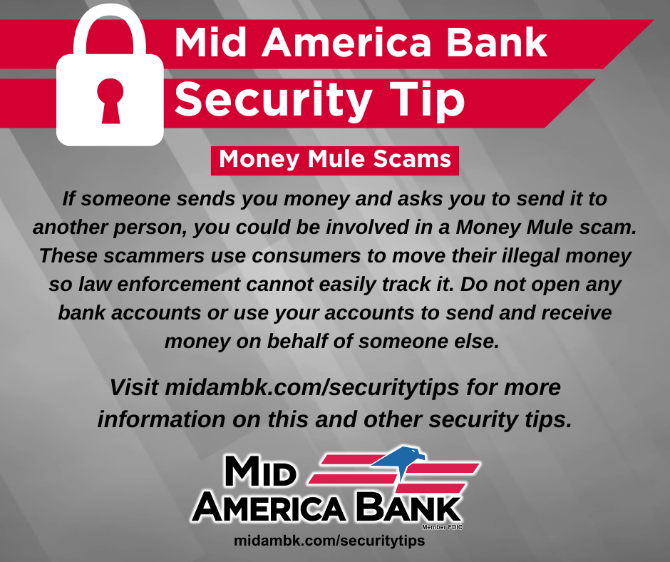 At Mid America Bank, we are diligent about security and are continually investing in our security protocols and systems. However, we can only help protect you to an extent. If you’ve experienced any sort of fraud, you are probably aware of the damage and headaches associated with identity theft. If you haven’t, please remember it is important to be aware of potential fraud in the digital world.